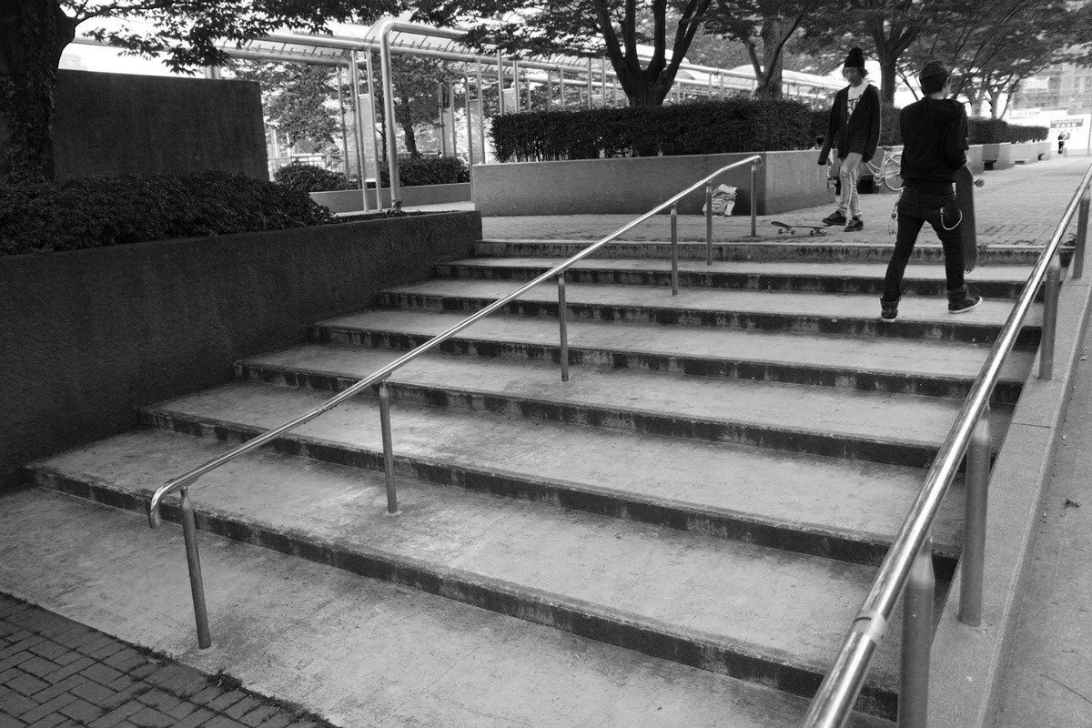 そのレールspotの近くに巨大な飛び出しバンクのレール越えみたいな?? のがあって案内したわいいが、巨大すぎて却下。。。。 その歩道沿いになんとも日本っぽいspotがいろいろありまして、夏の暑い時に来ようと 次へ!!