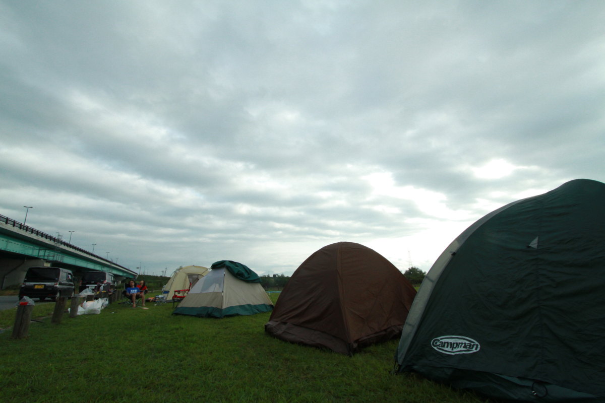 風呂屋行ってカッパさん達とテントはってBBQへ