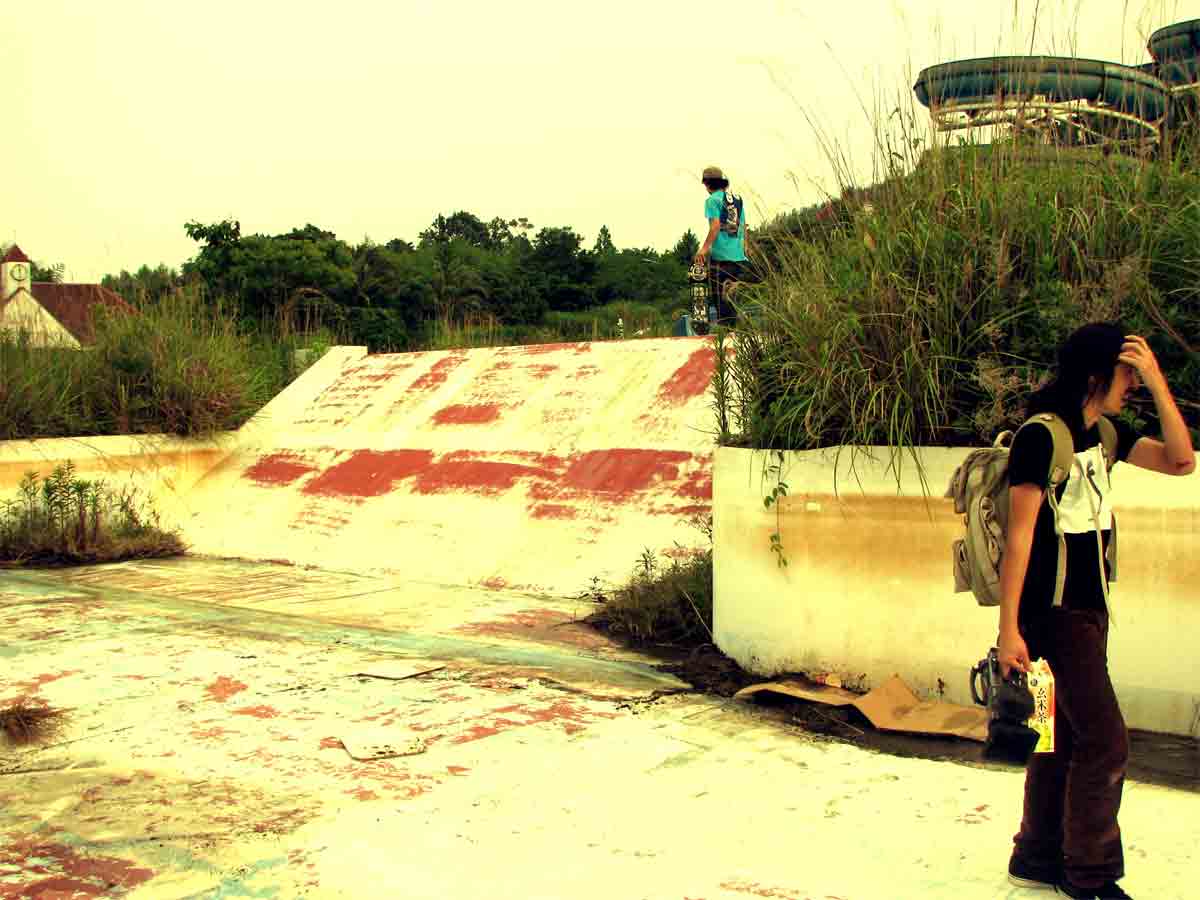 かる〜く撮り終えた後は、流れるpoolの中間に位置している(予測)デッカいflatの滑り台。この日は下に泥水が、たまっており明日やるためにとりあえず掃除開始〜!!