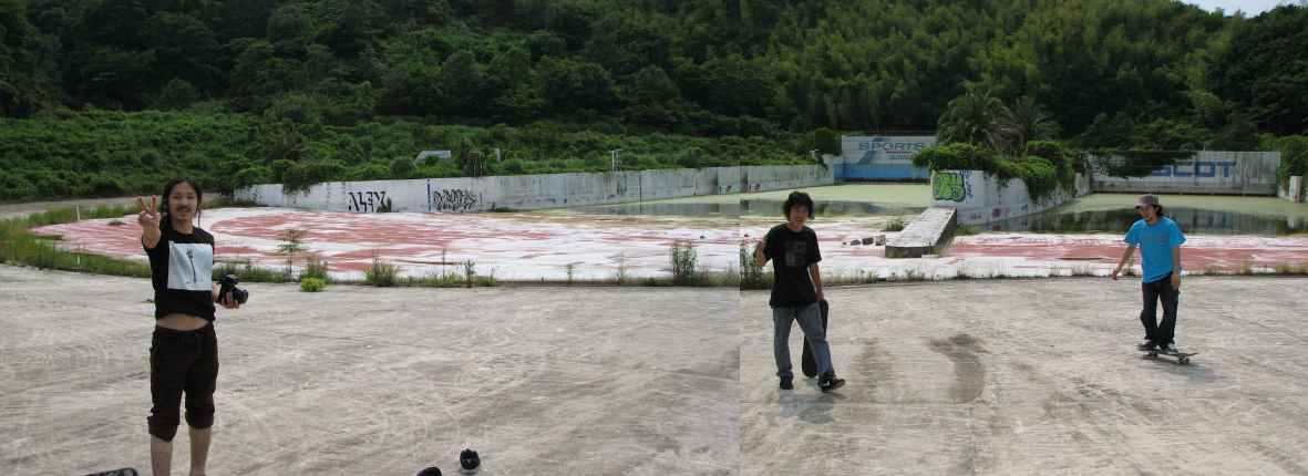 4 そのpool施設の中の、一般の人からみると滑り台ですが、skaterの視線だと、snakeと言われる物 途中、途中にbowlもあって、ホント凄いspotでした。